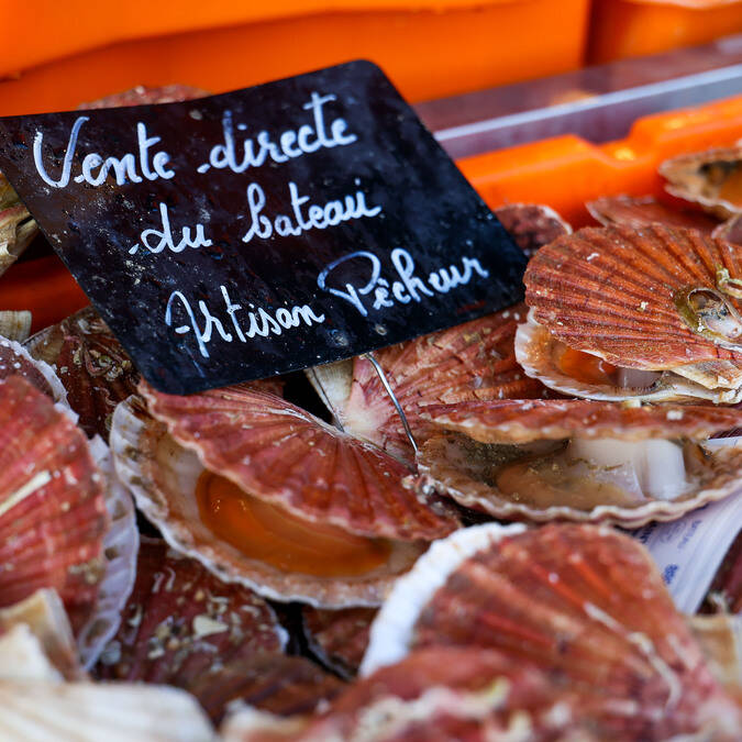 Les fonds de la Mer du Nord et de la Manche abritent également des myriades d'invertébrés tels que le homard, l'oursin, le crabe ou encore le poulpe. Les plateaux de fruits de mer sont à la fête ! D'octobre à mai, les coquillards débarquent à Boulogne la fameuse Saint-Jacques. Soumis à des quotas, les pêcheurs français ont l'obligation de ramener les coquilles vivantes. Une contrainte au regard d'autres pays mais une garantie de fraîcheur pour nous consommateurs ! Si la Saint-Jacques française est si réputée, c'est aussi parce qu'elle se révèle particulièrement goûteuse. Ces coquilles qui ont eu le temps de murir sont de belle taille et pourvue d'une noix bien charnue. Un délice.